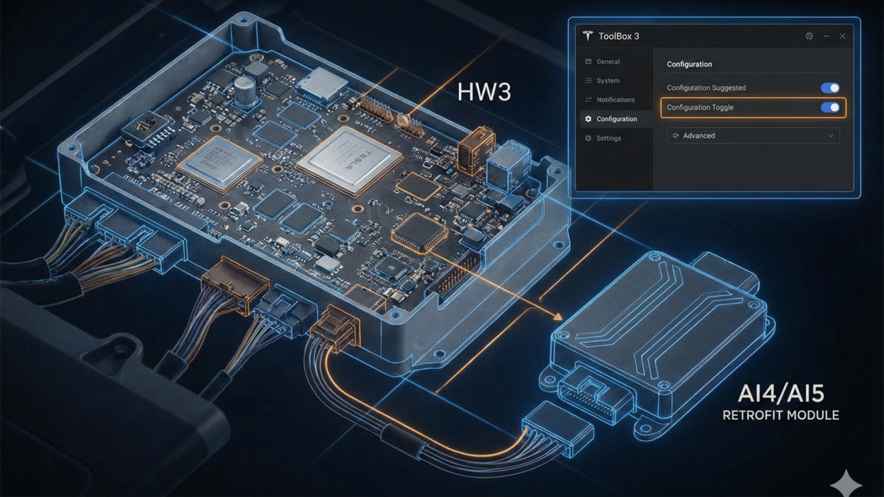 Ez a kapcsoló korábban nem volt elérhető, és valószínűleg kizárólag a belső csapatok számára korlátozták a hozzáférést. A funkció lehetővé teszi a technikus számára, hogy manuálisan tájékoztassa a jármű firmware-ét a fizikai számítógép cseréjéről (például HW3-ról AI4-re). A tény, hogy ez hirtelen megjelent a harmadik fél által üzemeltetett szervizek és a „csináld magad” (DIY) közösség által használt eszközben, arra utal, hogy a Tesla előkészíti a terepet a jövőbeli utólagos beépítésekhez (retrofit).