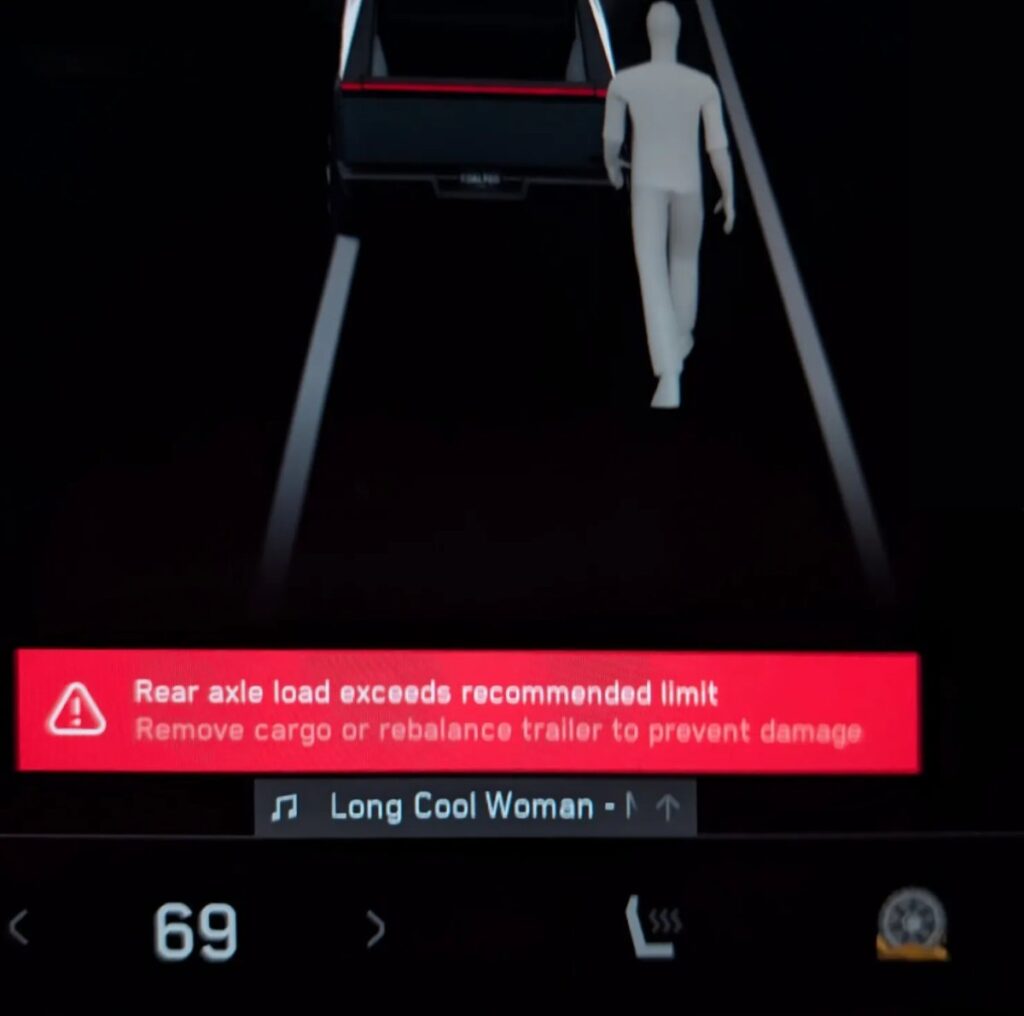 A Cybertruck mostantól figyelmezteti a vezetőt, ha a vontatmány meghaladja a jármű terhelhetőségét. Ez a funkció a jövőben várhatóan más légrugós modellekben is elérhető lesz, például a Model S és Model X változatokban.