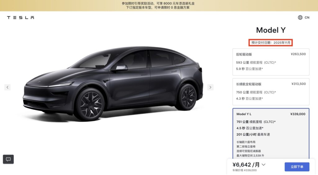 A hosszabb tengelytávú Model Y L augusztusban mutatkozott be, az első kiszállítások pedig szeptemberben kezdődtek meg, ahogy azt Grace Tao, a Tesla Kína alelnöke előzetesen bejelentette. Már az indulás napján több mint 35 ezer előrendelés érkezett az új modellre, ami jól mutatja a kereslet erejét.