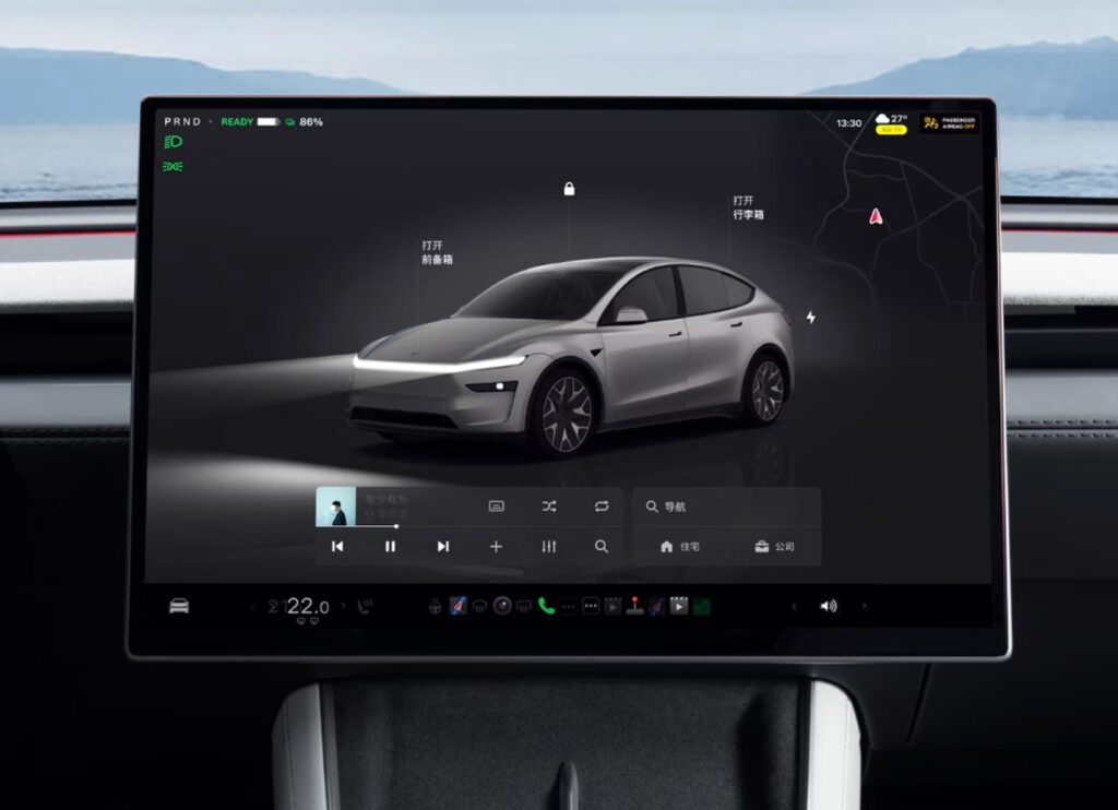 Az első sorban a központi kijelző mérete 15,4 hüvelykről 16 hüvelykre nőtt, a hátsó sorban pedig maradt a 8 hüvelykes panel. Bár ez kisebb, mint a Model S/X 9,4”-os hátsó kijelzője, a Y L szélessége egyszerűen nem enged nagyobb megoldást.